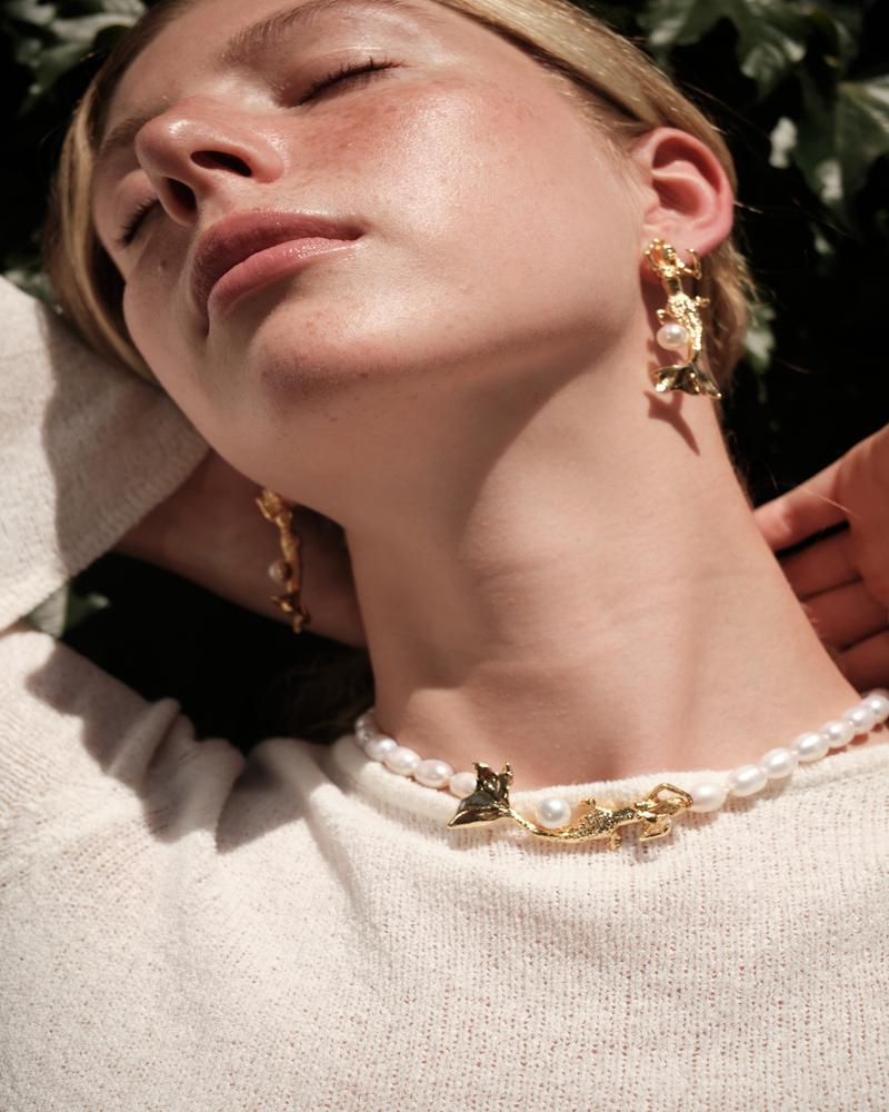 Denizin büyüsünü üzerinizde taşımaya hazır mısınız? Deniz Kızı İncili Kolye, zarif tasarımı ve yüksek kaliteli malzemeleriyle her anınıza ışıltı katacak. Eşsiz bir deniz kızı figürüyle tasarlanan bu kolye, denizlerin derinliklerinden ilham alarak stilinize zarif bir dokunuş ekliyor.