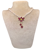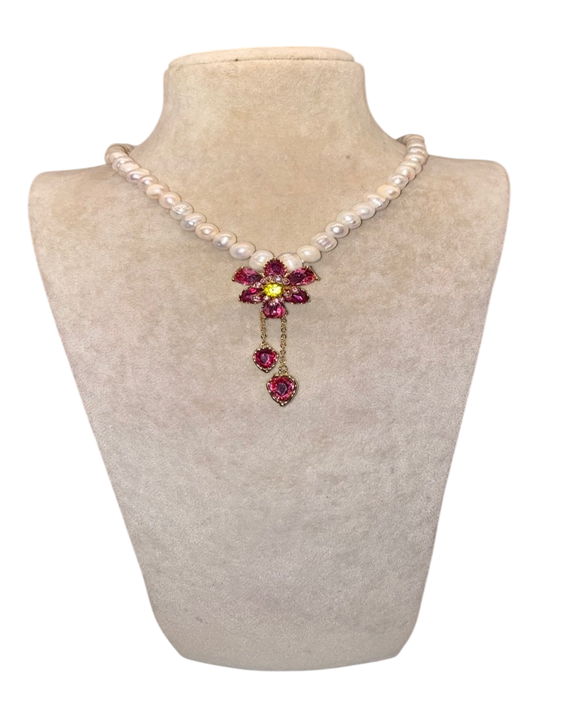 Çiçekli Pembe Taşlı Kolye – 40 cm, Mıknatıslı Kilit ile Kolay Kullanım