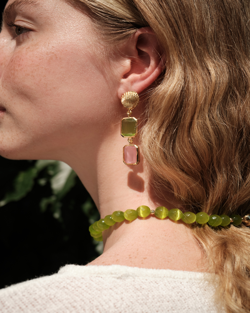 Taşlı Midye Kabuklu Küpe, şıklığı ve zarafeti bir araya getiren özgün tasarımıyla dikkatleri üzerinize çeker. Doğal taşların ve midye kabuğu detaylarının birleşimiyle tasarlanmış bu küpe, her anınıza özel bir dokunuş katacak.